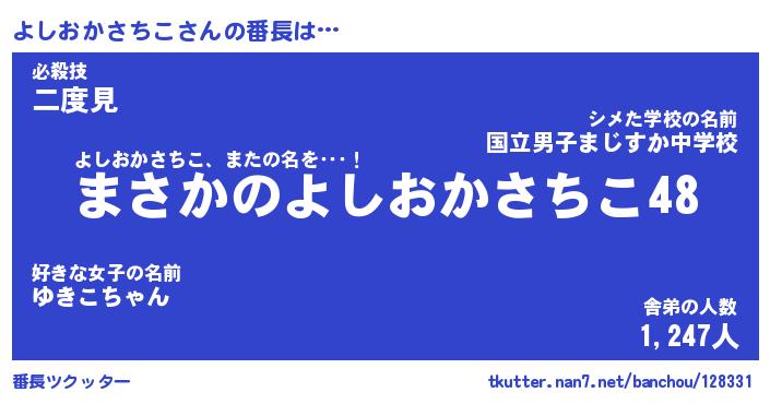 | 男性向けラノベタイトル風あだ名 | 『よしおかさちこの憂鬱』 |