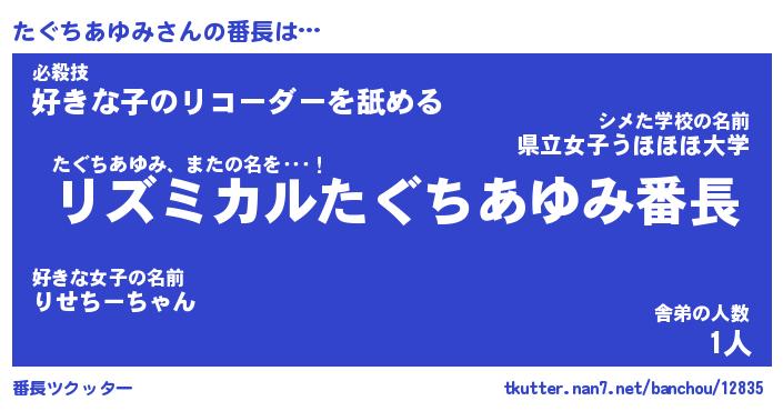 | ツイッター | たぐちあゆみさんのツイッターID『kikurage_nyan』 |