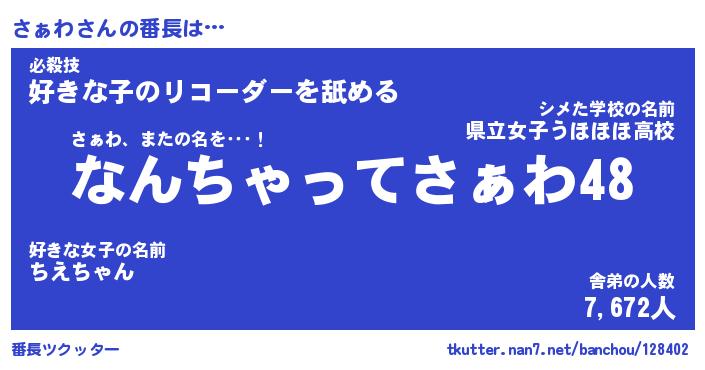 | 意味不明あだ名 | 『ペロリンさぁわ』『さぁわフォーエバー』 |