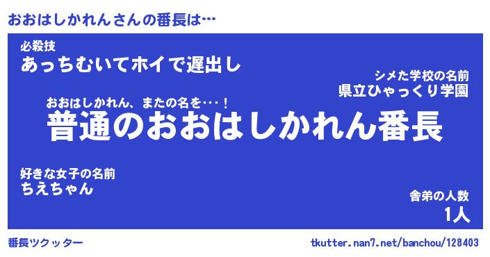 | ピコ太郎風あだ名 | 『オコ次郎』『ピオ八郎』『オオ次郎』 |