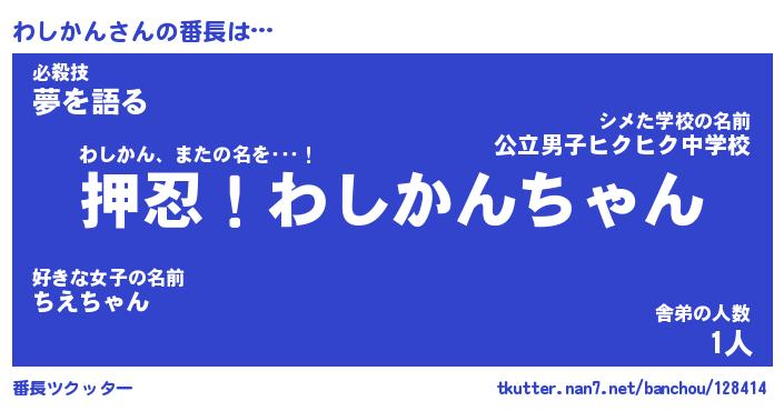 | ポケモン風あだ名 | 『ワシチュウ』『ワシカダネ』 |