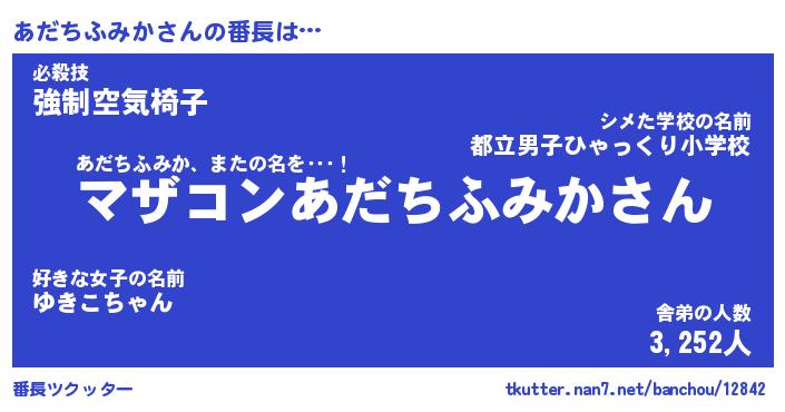 | ポケモン風あだ名 | 『アダチュウ』『アダチダネ』 |