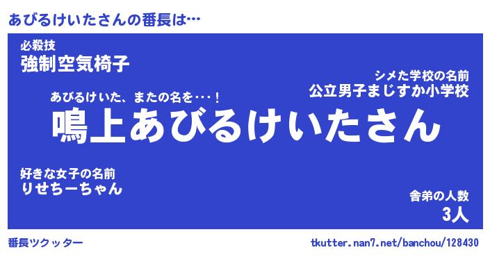 | 意味不明あだ名 | 『ペロリンあびるけいた』 |