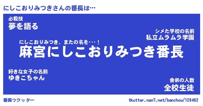 | 肩書あだ名 | 『にしこおりみつき社長』 |