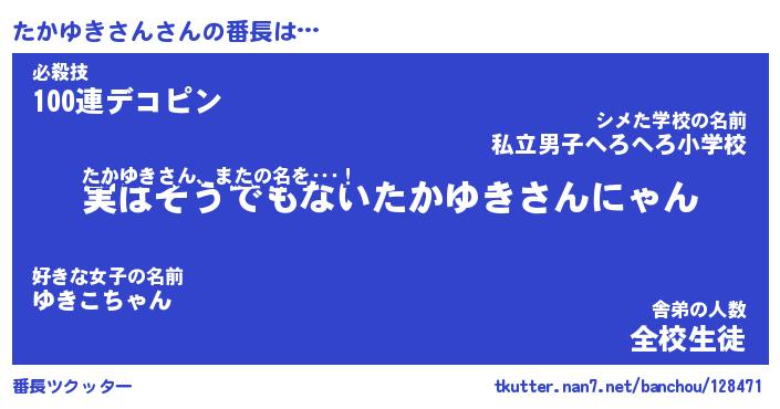 | ヒーロー風カッコイイあだ名 | 『スーパータカユキサン』『暗黒騎士タカ』 |