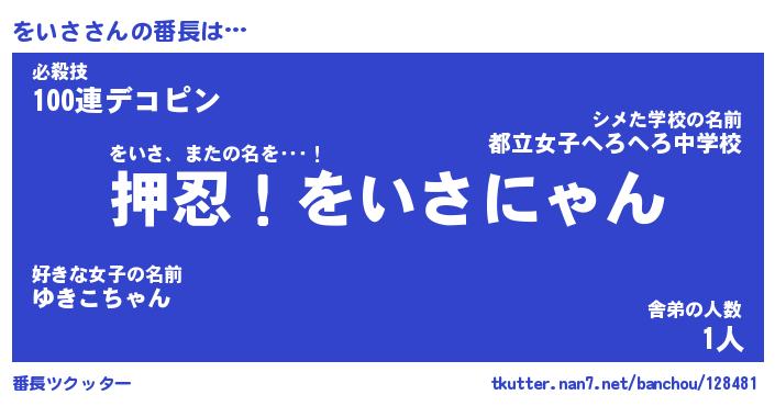 | ヒーロー風カッコイイあだ名 | 『スーパーヲイサ』『ウルトラをいさマン』 |