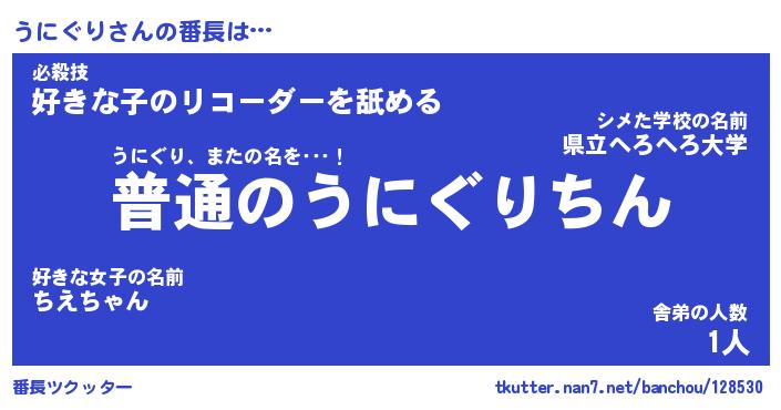 | 肩書あだ名 | 『うにぐり社長』『うにぐり総理大臣』 |