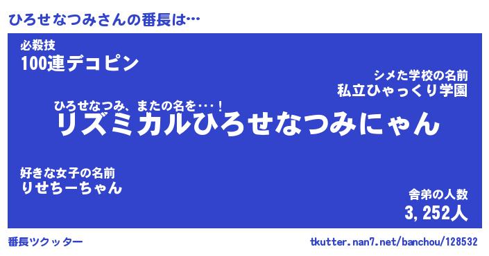 | ポケモン風あだ名 | 『ヒロチュウ』『ヒロセダネ』 |