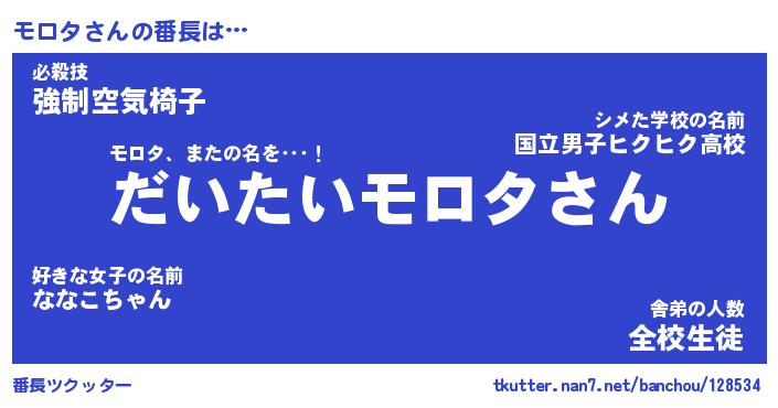 | ヒーロー風カッコイイあだ名 | 『スーパーモロタ』『ウルトラモロタマン』 |