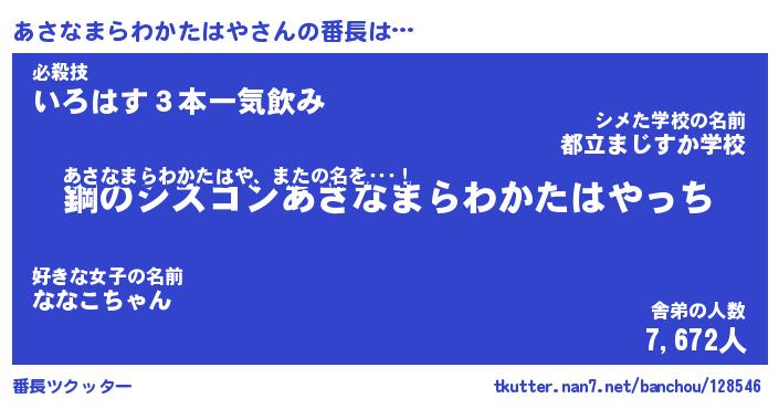 | ヘコむあだ名 | 『あさもー』『なまこ酢』『あさっぺ』 |