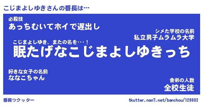 | ポケモン風あだ名 | 『コジチュウ』『コジマダネ』 |