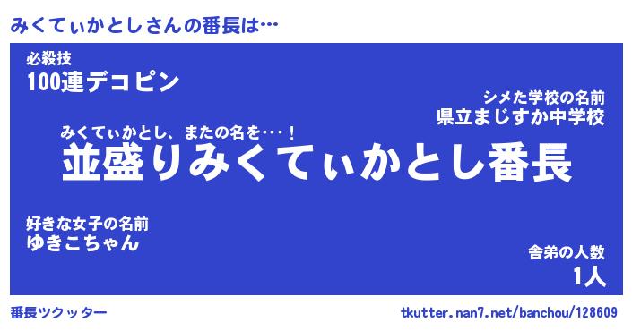 | ピコ太郎風あだ名 | 『ミコ六郎』『ピミ六郎』『ミク三郎』 |