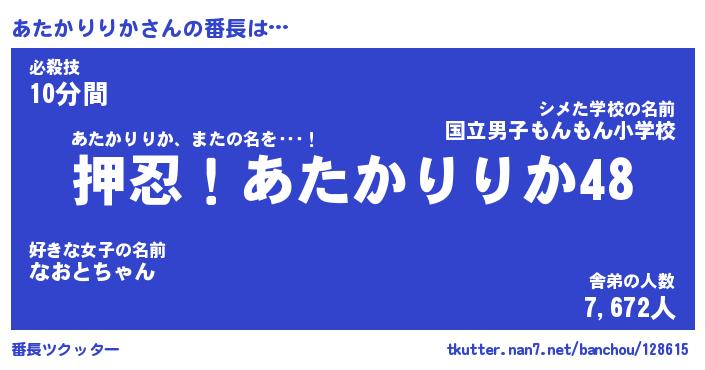 | 恥ずかしいあだ名 | 『プリティーあたかりりか』『あたっちょ』 |