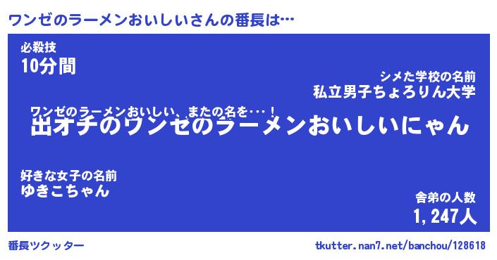 | 肩書あだ名 | 『ワンゼのラーメンおいしい店長』 |