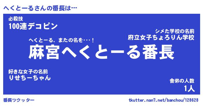 | ピコ太郎風あだ名 | 『ヘコ四郎』『ピヘ八郎』『ヘク太郎』 |