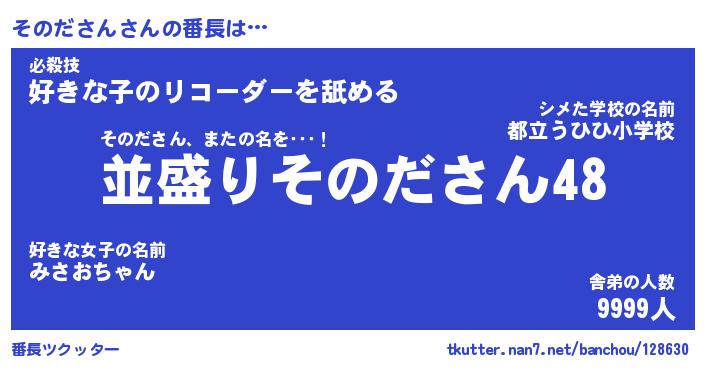 | ファンタジー風あだ名 | 『ソノフェル』『エターナルソノダサンー』 |