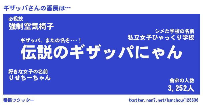 | 意味不明あだ名 | 『ペロリンギザッパ』『永久保存ギザッパ』 |