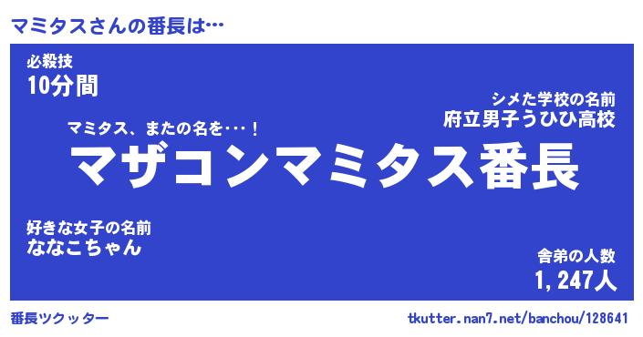 | ヒーロー風カッコイイあだ名 | 『スーパーマミタス』『銀牙騎士マミ』 |
