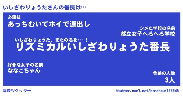 | ピコ太郎風あだ名 | 『イコ四郎』『ピイ太郎』『イシ五郎』 |