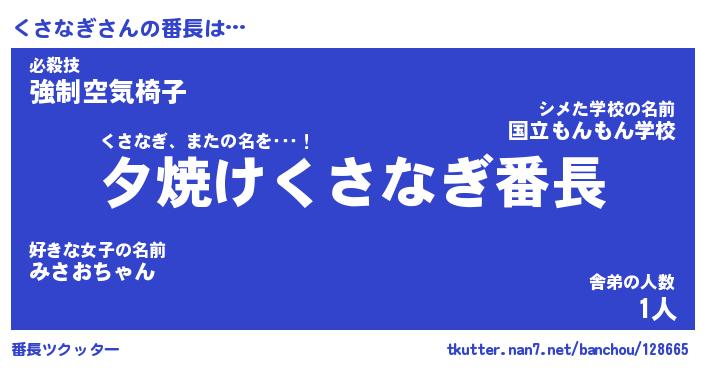 | 意味不明あだ名 | 『ペロリンくさなぎ』『永久保存くさなぎ』 |