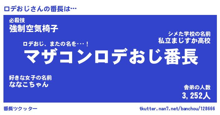 | 伝説のあだ名 | 『封印されしスナイパーロデおじ』 |