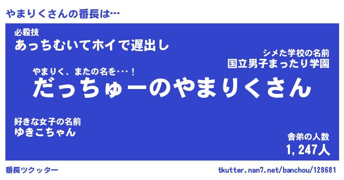 | ヒーロー風カッコイイあだ名 | 『スーパーヤマリク』『天弓騎士ヤマ』 |