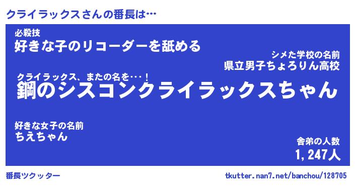 | ポケモン風あだ名 | 『クラチュウ』『クライダネ』 |