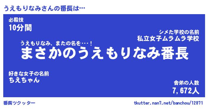 | 男性向けラノベタイトル風あだ名 | 『うえもりなみの憂鬱』 |