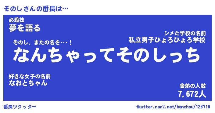 | ヒーロー風カッコイイあだ名 | 『スーパーソノシ』『ウルトラそのしマン』 |