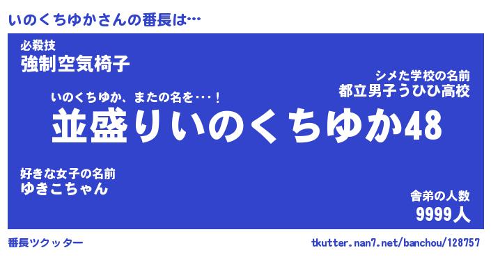 | ヒーロー風カッコイイあだ名 | 『スーパーイノクチユカ』『魔戒騎士イノ』 |