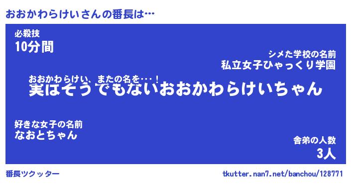 | 肩書あだ名 | 『おおかわらけい社長』 |