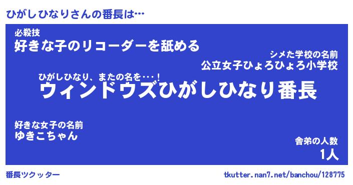 | 伝説のあだ名 | 『伝説のスナイパーひがしひなり』 |