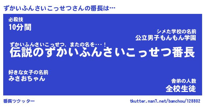 | ヒーロー風カッコイイあだ名 | 『スーパーズカイフンサイコッセツ』 |