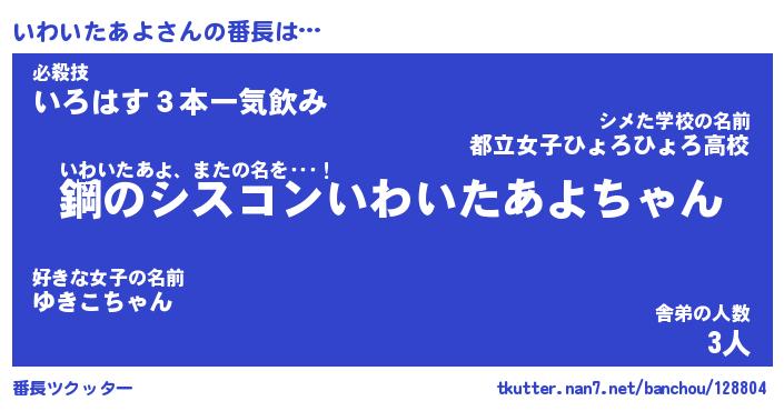 | ヘコむあだ名 | 『いわもー』『なまこ酢』 |