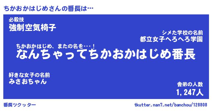 | 伝説のあだ名 | 『伝説のスナイパーちかおかはじめ』 |