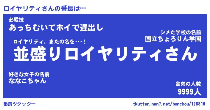 | ヒーロー風カッコイイあだ名 | 『スーパーロイヤリティ』『天弓騎士ロイ』 |