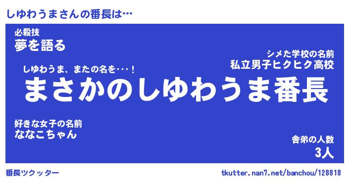 | ヒーロー風カッコイイあだ名 | 『スーパーシユワウマ』『銀牙騎士シユ』 |