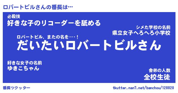 | ヒーロー風カッコイイあだ名 | 『スーパーロバートビル』『幻影騎士ロバ』 |