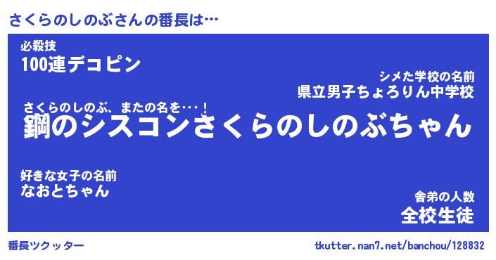 | 伝説のあだ名 | 『封印されしスナイパーさくらのしのぶ』 |