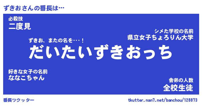 | ヒーロー風カッコイイあだ名 | 『スーパーズキオ』『ウルトラずきおマン』 |