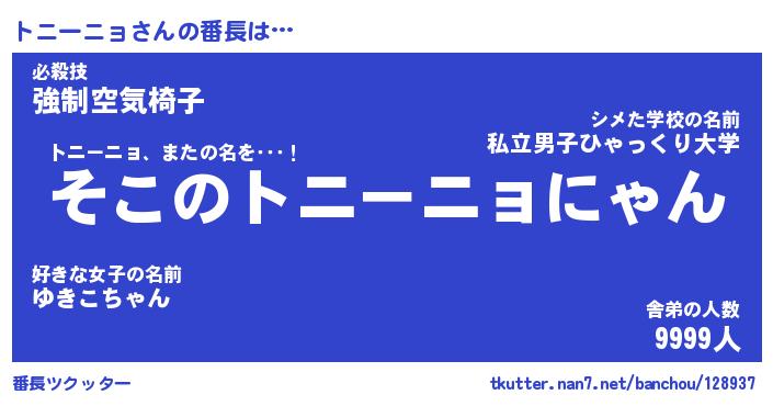 | ポケモン風あだ名 | 『トニチュウ』『トニーダネ』 |