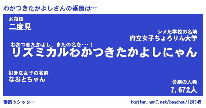 | 肩書あだ名 | 『わかつきたかよし社長』 |