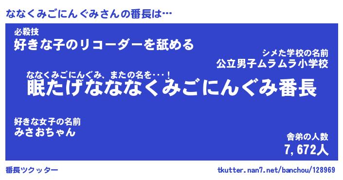| 意味不明あだ名 | 『ペロリンななくみごにんぐみ』 |