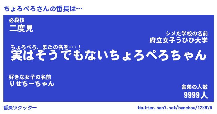 | ヒーロー風カッコイイあだ名 | 『スーパーチョロペロ』『銀牙騎士チョ』 |