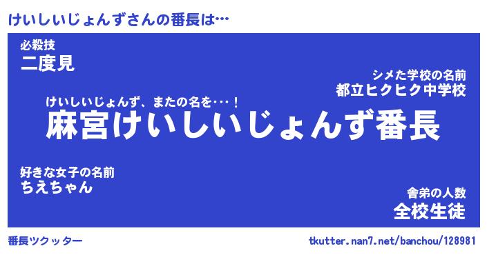 | 2回繰り返すあだ名 | 『けいけい』『けけいい』『うずうず』 |