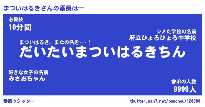 | 肩書あだ名 | 『まついはるき店長』『まついはるき先生』 |