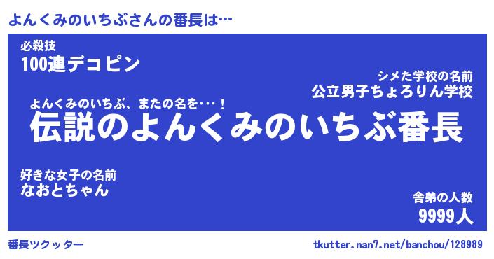 | 欧米人風あだ名 | 『マイケルよんくみのいちぶ』 |
