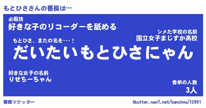 | 肩書あだ名 | 『もとひさ店長』『もとひさ国家主席』 |