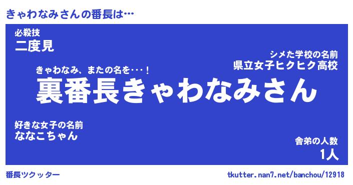 | 肩書あだ名 | 『きゃわなみ店長』『きゃわなみ総理大臣』 |
