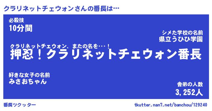 | 意味不明あだ名 | 『ペロリンクラリネットチェウォン』 |
